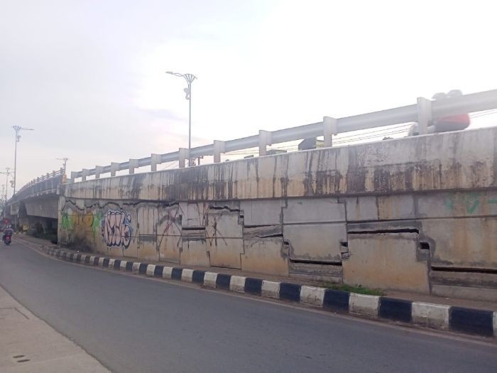 SOROTMATA.ID, SAMARINDA – Keretakan dinding jembatan layang atau fly over yang menghubungkan Jalan Aw. Syahranie dengan Jalan Ir Juanda beredar di beberapa sosial media.